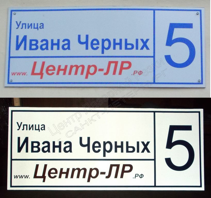 Светоотражающие таблички. Таблички светятся в темноте при попадании света. Основной материал для изготовлении табличек – виниловая светоотражающая пленка. Пленка обладает повышенными эксплуатационным сроком, так как в основном используется в уличных условиях.