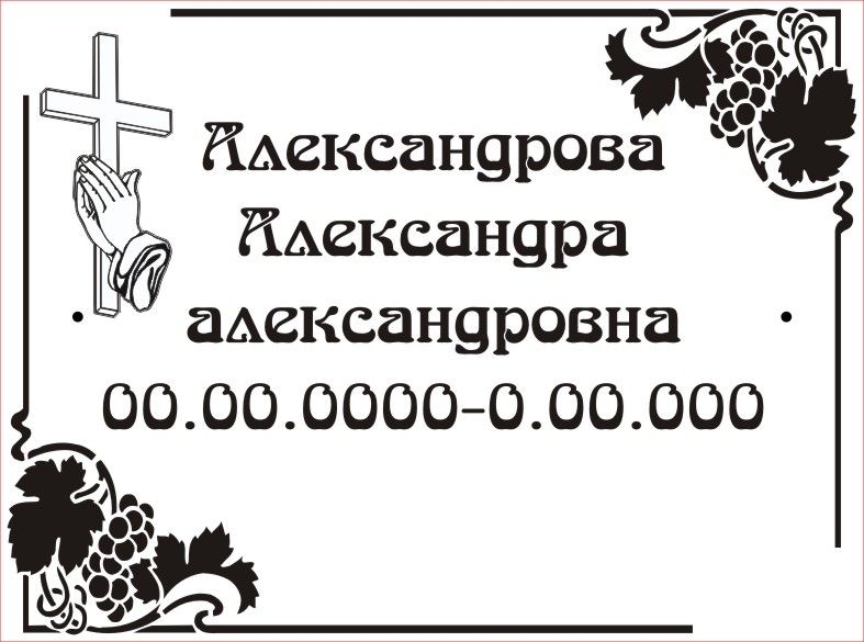 Ритуальная табличка изготавливается из пластика или алюминия для установки на крест, памятник. Информация наносится гравировкой или печатью. Срок изготовления 2-4 часа для пластика и 12 часов для алюминия.