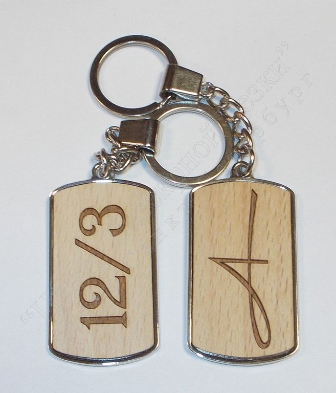 Металлический брелок с деревянной вставкой с двух сторон. Получается деревянный брелок в металлическом корпусе. Нанесение рисунка по технологии лазерной гравировки. Деревянные вставки только из натурального дерева. Цена указана для брелка с вставкой из бука.