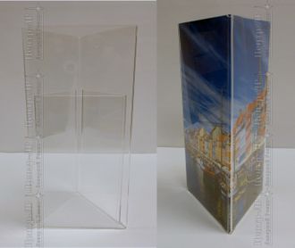 Тейбл тент 1/3 А4, Тейбл тент, менюхолдер, настольный информационный держатель Размер вставки - стандартный лист 210*99 мм. Размер изделия 210*110*110 мм. Материал прозрачный акрил (оргстекло) 1,5-2 мм.