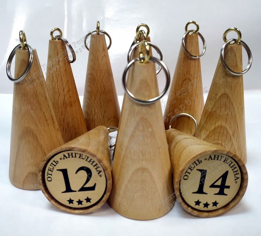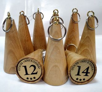 Белок для гостиниц "конус, бук". Одна из разновидностей брелка груша. Изготовление брелков цилиндрической формы из натурального дерева для гостиниц, отелей, ресторанов. Брелок премиум-класса состоит из деревянного конуса, пластиковой вставки золотистого или серебристого цвета, с нанесенной на ней лазерной гравировкой изображения, по макету заказчика. Минимальная партия 10 штук.