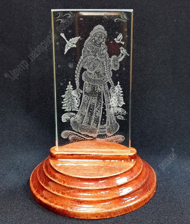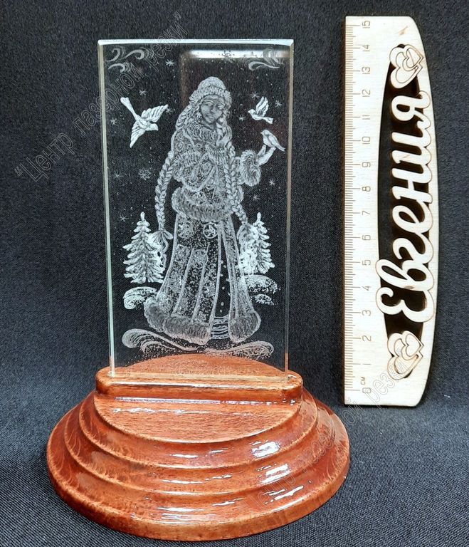 Новогодний сувенир выполнен в технике ручной объемной гравировки от лучших мастеров России. На стекле работа выполняется с двух сторон, за счет этого создается передений и задний план изображения. Интересный и необычный подарок с гравировкой для близкого человека.