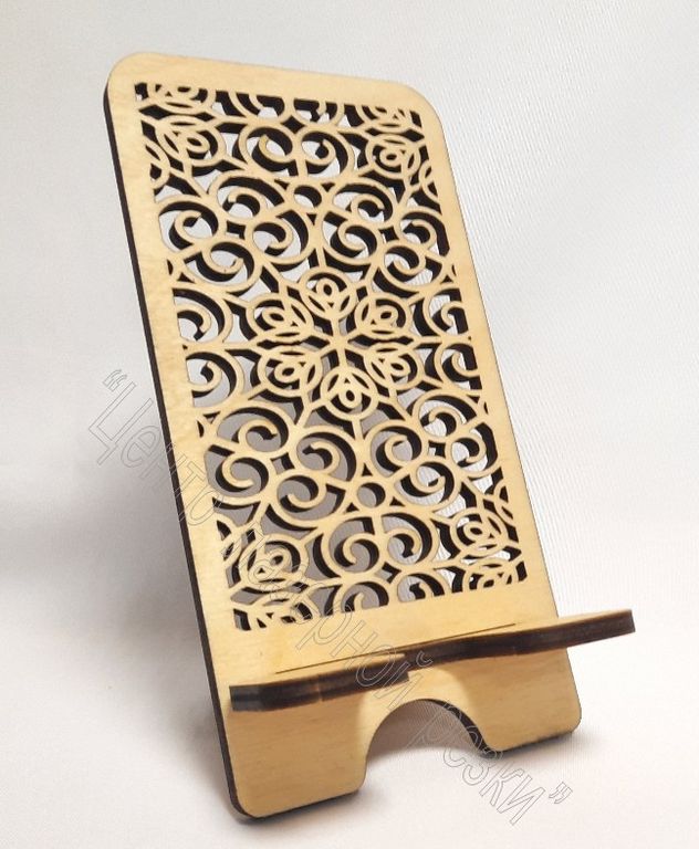 Подставка для телефона, смартфона. "Узор 2" Изготовлена из 6мм фанеры, сделана тонировка под красное дерево.