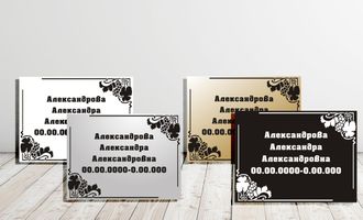 Ритуальная табличка изготавливается из пластика или алюминия для установки на крест, памятник. Информация наносится гравировкой или печатью. Срок изготовления 2-4 часа для пластика и 12 часов для алюминия.